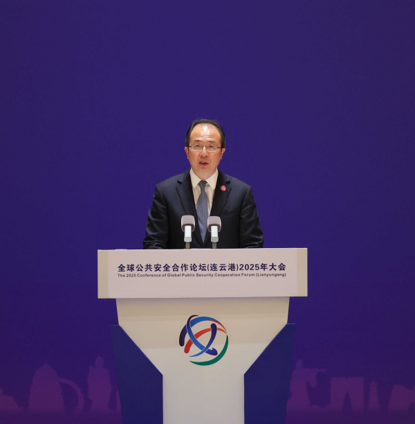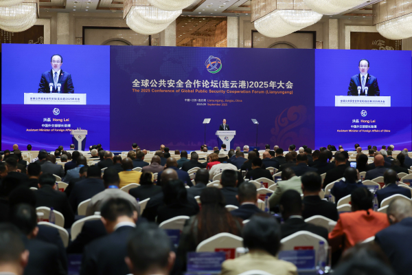 2025年9月17日,外交部部长助理洪磊在江苏省连云港市出席全球公共安全合作论坛(连云港)2025年大会,并发表题为《携手落实全球安全倡议 持续推动构建全球公共安全共同体》的演讲。