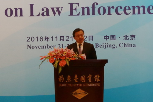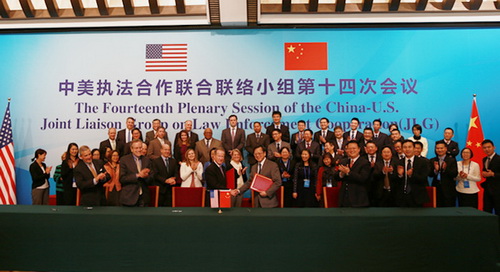 2016年11月21至22日,为期两天的中美执法合作联合联络小组(JLG)第十四次全会在北京举行。中国外交部副部长刘振民、美国驻华使馆临时代办阮大为出席全会开幕式并致辞。会议回顾了一年来的执法合作情况,并就双方关注的执法合作问题交换意见,包括反腐败追逃追赃合作、打击网络犯罪、禁毒等诸多热点问题,并规划了下一步合作方向。