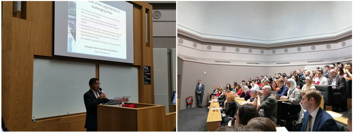 磋商期间,五常条法司长(法律顾问)应邀前往爱丁堡大学,与百余名英国国际法专家学者进行交流。贾桂德司长介绍了中国坚定捍卫以《联合国宪章》为基础的国际政治体制、世贸组织为核心的多边贸易体制的立场以及在和平解决争端方面的原则主张,并现场就国际法作用、国际司法机构工作等问题进行互动交流。