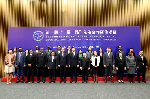 二是着力提升能力,促进规则协调。共建“一带一路”国家多数属于发展中国家,对于提高自身能力和参与国际治理有殷切期待。希望大家以研修项目为契机,深入研究“一带一路”建设中的法律问题,共同提高能力水平,深化贸易投资、金融税收、交通环保等领域的法律和规则“软联通”,打造相互兼容的“规则高速公路”,为“一带一路”建设营造相对稳定的法律框架。
