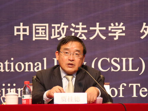 2020年11月7日,中国国际法学会40周年纪念大会暨2020年学术年会在北京召开,外交部条法司贾桂德司长应邀与会。贾桂德在开幕式上就当前国际法发展形势和我国外交条法工作做主旨报告。