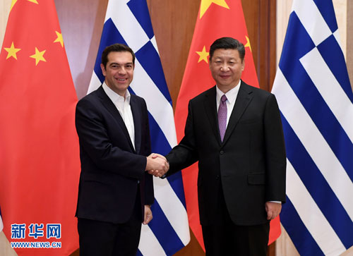 2017年5月13日,国家主席习近平在钓鱼台国宾馆会见来华出席“一带一路”国际合作高峰论坛的希腊总理齐普拉斯。