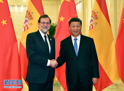 2017年5月13日,国家主席习近平在人民大会堂会见来华出席“一带一路”国际合作高峰论坛的西班牙首相拉霍伊。