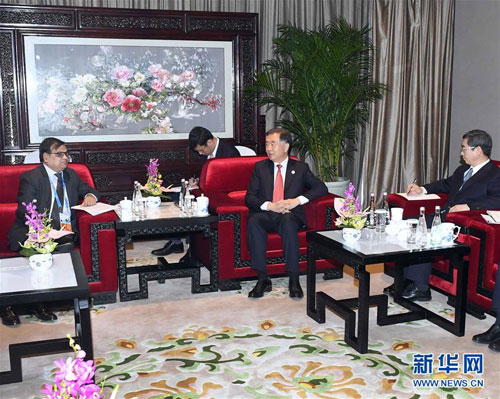 2017年5月14日,国务院副总理汪洋在京分别会见来华出席“一带一路”国际合作高峰论坛的尼泊尔副总理兼财长马哈拉,比利时副首相兼就业、经济和外贸大臣皮特斯以及世贸组织总干事阿泽维多。