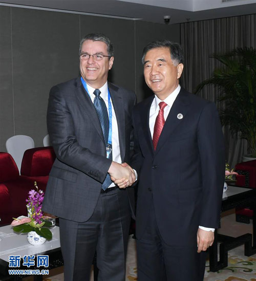 在会见阿泽维多时,汪洋表示,坚持多边主义、支持多边贸易体制是中国政府的一贯立场。中方将继续旗帜鲜明反对保护主义,坚决维护世贸组织权威性和有效性,全力支持世贸组织在全球经济治理和国际经贸规则制定中发挥更大作用。