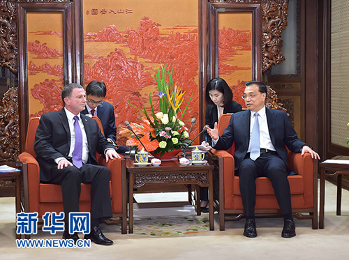 2016年4月12日下午,国务院总理李克强在中南海紫光阁会见以色列议长埃德尔斯坦。