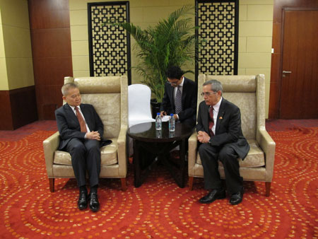2016年5月26日,外交部部长助理刘海星出席约旦驻华使馆举办的庆祝约旦独立70周年暨阿拉伯大起义100周年招待会,并同约旦驻华大使卡拉莱就中约关系和双方共同关心的问题交换意见。