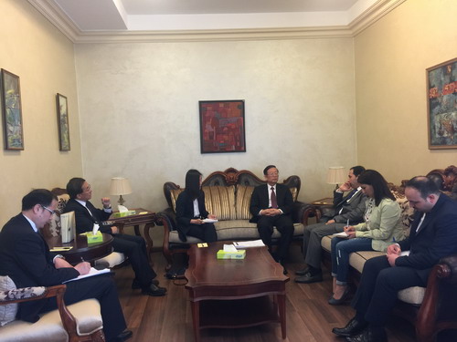 2019年4月8日,李成文会见约旦外交部亚大司司长、阿拉伯和中东司代司长马希尔。驻约旦大使潘伟芳等参加会见活动。