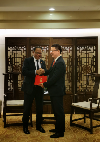 2022年9月14日,外交部亚洲司司长刘劲松会见东帝汶驻华大使桑托斯,就中东关系和共同关心的国际地区问题交换意见。