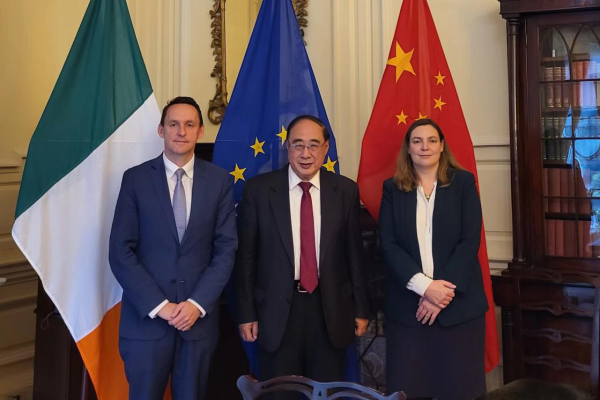 2022年9月21至22日,中国政府欧洲事务特别代表吴红波访问爱尔兰,分别会见爱众议长奥法乔尔、外交部政治副总司长弗林、亚太司司长莱斯利。