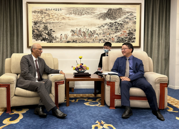 2022年10月10日,外交部亚洲司司长刘劲松会见巴基斯坦驻华大使哈克。