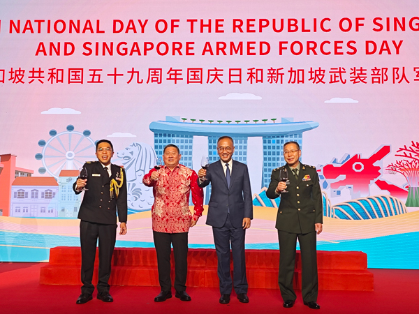 2024年8月13日,外交部副部长陈晓东应邀出席新加坡驻华使馆举办的新加坡国庆日暨武装部队军人节招待会,并同新加坡驻华大使陈海泉就中新关系等交换意见。