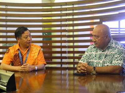 中国驻斐济大使黄勇、驻斐使馆政务参赞杨朝晖陪同出席有关会议和会见。