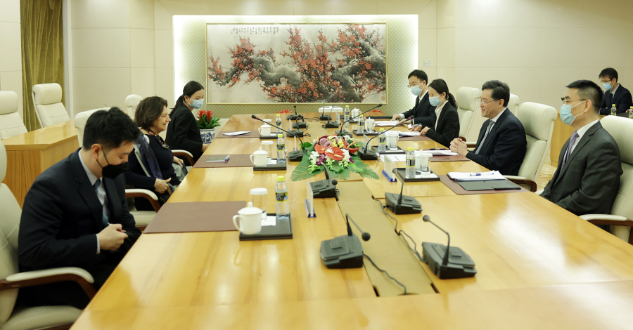 秦刚会见联合国政治和建设和平事务副秘书长迪卡洛