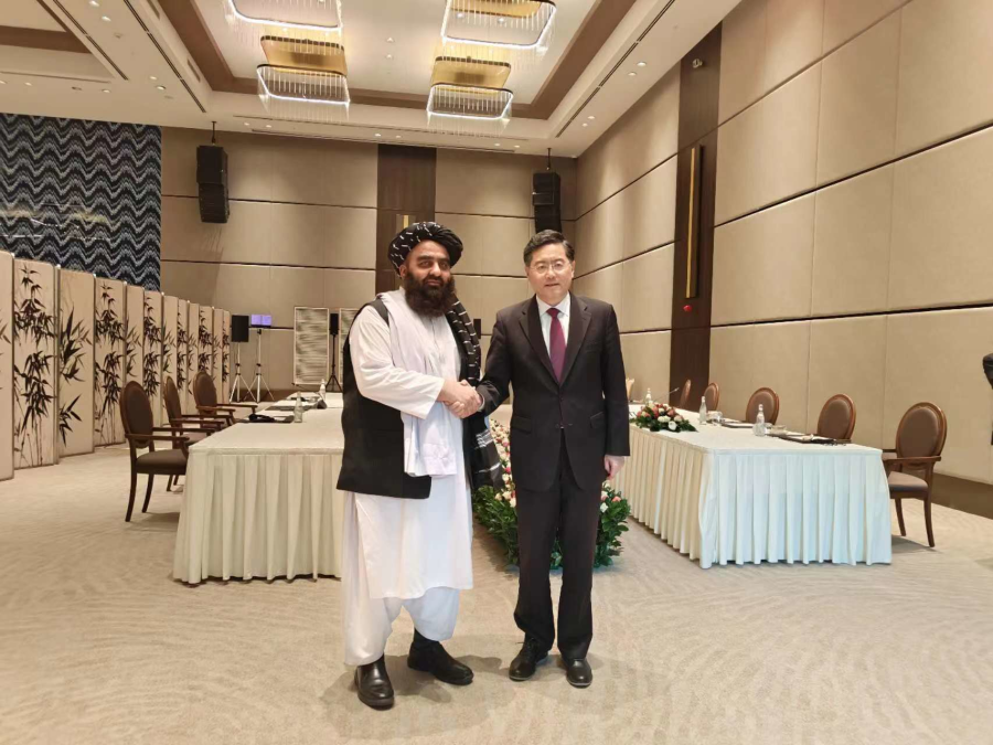 秦刚会见阿富汗临时政府代理外长穆塔基