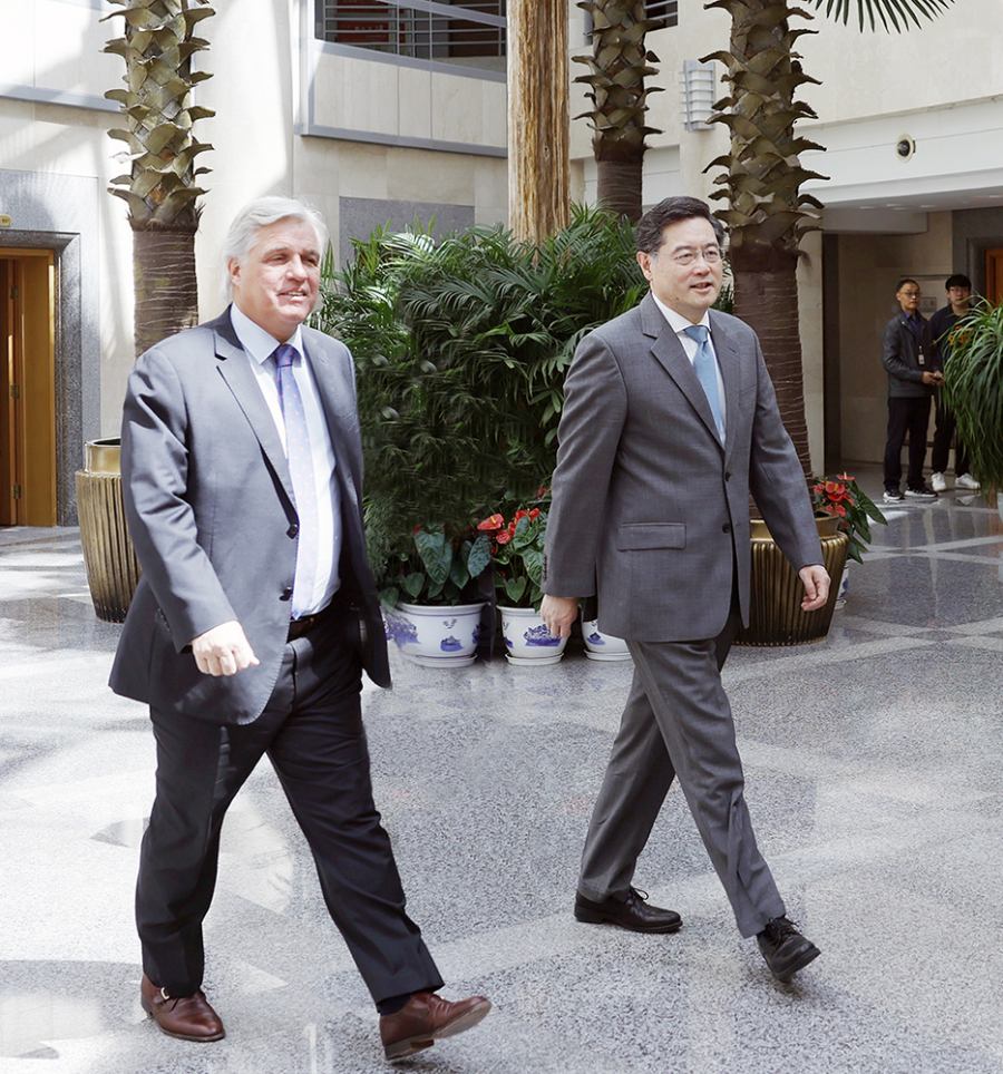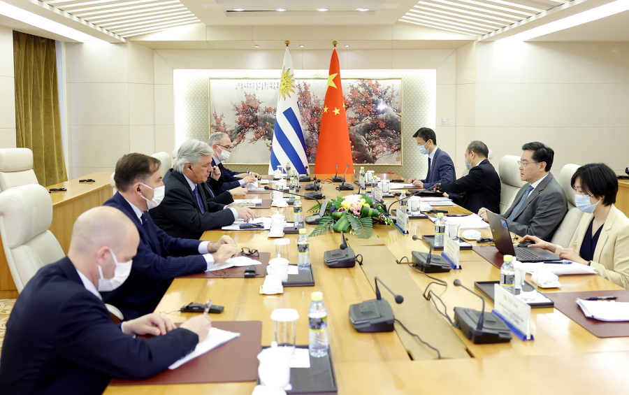 秦刚同乌拉圭外长布斯蒂略举行会谈