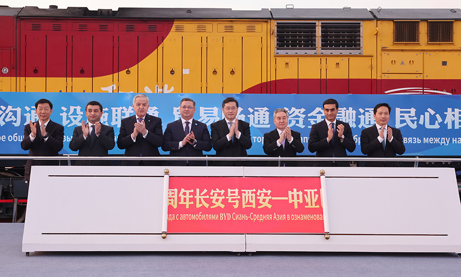 中国中亚六国外长共同出席中欧班列“一带一路”十周年长安号西安—中亚专列启动仪式