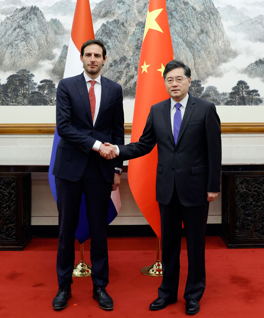 秦刚同荷兰副首相兼外交大臣胡克斯特拉举行会谈