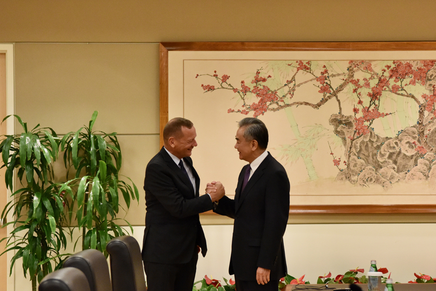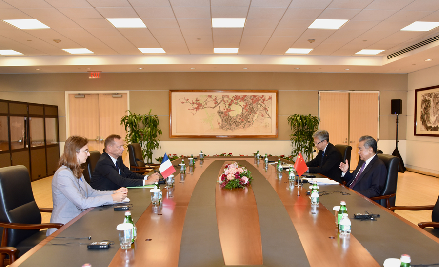 王毅会见法国总统外事顾问博纳