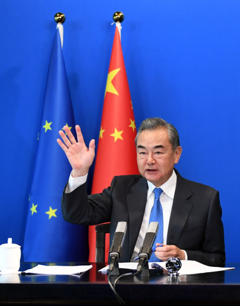 2022年3月29日,国务委员兼外长王毅同欧盟外交与安全政策高级代表博雷利举行视频会见。