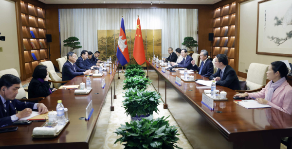 王毅表示,今年是中柬建交65周年和“中柬友好年”,习近平主席两次会见西哈莫尼国王和洪玛奈首相,并同洪森亲王保持战略沟通,充分体现了中柬关系的特殊性和高水平。两国率先签署新版构建中柬命运共同体行动计划,为推动构建人类命运共同体发挥了示范作用。祝贺柬埔寨独立70周年,很高兴看到在洪玛奈首相带领下,柬埔寨新一届政府施政百日成绩亮眼。中国永远是柬埔寨可信赖和可依靠的朋友,将一如既往支持柬埔寨走符合本国国情的发展道路,支持柬方捍卫国家主权独立和民族尊严,支持柬新一届政府维护稳定、发展经济、改善民生,愿为此提供力所能及的帮助。