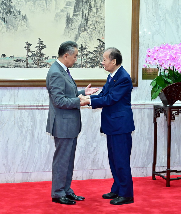 2024年8月28日,中共中央政治局委员、中央外办主任王毅在京会见日本日中友好议员联盟会长二阶俊博一行。
