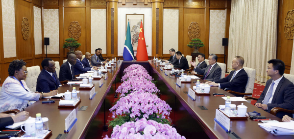 2024年9月1日,中共中央政治局委员、外交部长王毅在京会见来华出席2024年中非合作论坛峰会的南非外长拉莫拉。