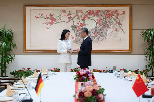 王毅表示,今年以来,中德高层密切互动,两国领导人为双边关系作出战略规划。经贸合作保持高水平发展,特别是绿色、数字、创新等新兴领域合作取得务实成果,充分体现中德关系的互利性、战略性。中国共产党二十届三中全会锚定中国式现代化目标,决定进一步全面深化改革,推进高水平对外开放。许多德国企业已经敏锐把握这一先机,积极开拓中国市场,上半年德国对华投资额创历史新高。中德作为世界第二、第三大经济体,从彼此发展中受益并共同为世界和平与繁荣作出贡献,也为世界注入稳定性。