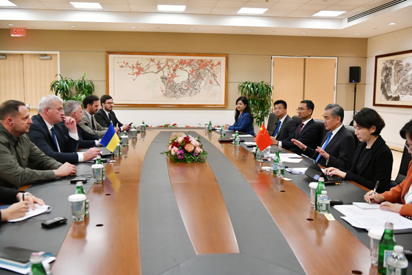 当地时间2024年9月25日,中共中央政治局委员、外交部长王毅在纽约联大期间应约会见乌克兰外长瑟比加。