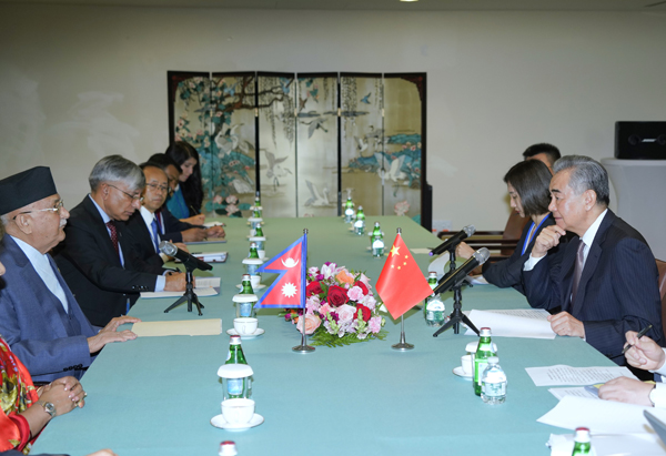 当地时间2024年9月26日,尼泊尔总理奥利在纽约联大期间会见中共中央政治局委员、外交部长王毅。