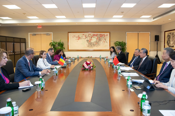 当地时间2024年9月26日,中共中央政治局委员、外交部长王毅在纽约联大期间会见罗马尼亚外长奥多贝斯库。