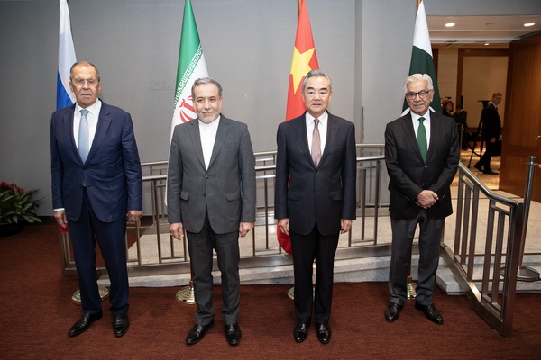 当地时间2024年9月27日,中共中央政治局委员、外交部长王毅在纽约联大期间同俄罗斯外长拉夫罗夫、巴基斯坦国防部长阿西夫、伊朗外长阿拉格齐举行四国外长阿富汗问题第三次非正式会议。