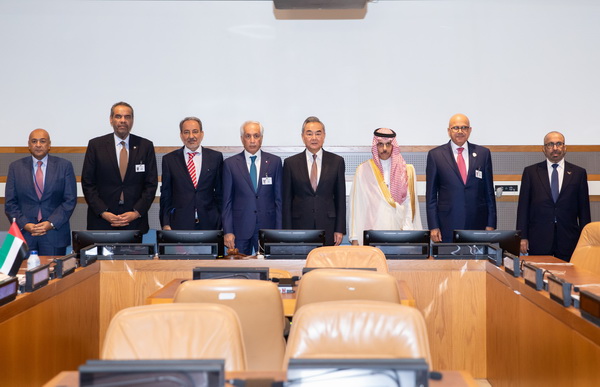 当地时间2024年9月27日,中共中央政治局委员、外交部长王毅在纽约出席第79届联大期间集体会见海湾阿拉伯国家合作委员会外长。海合会外长理事会现任轮值主席、卡塔尔外交国务大臣穆莱基,候任轮值主席、科威特外交大臣叶海亚,沙特外交大臣费萨尔,阿联酋国务部长哈利法,巴林外交大臣扎耶尼,阿曼无任所大使阿布杜勒阿齐兹,海合会秘书长布达维等出席。