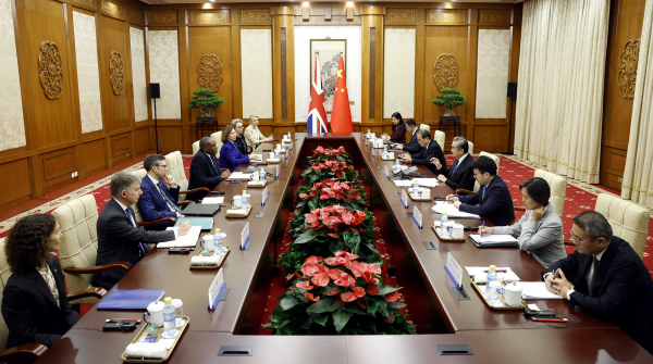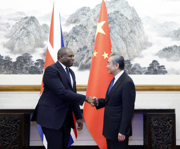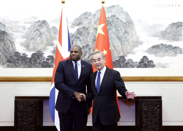 王毅表示,中英同为联合国安理会常任理事国和世界主要经济体,应当成为以联合国为核心的国际秩序的维护者、应对全球性挑战的合作者、实现国家发展的同行者。今年8月,习近平主席同斯塔默首相通话,就两国增进接触、深化合作达成重要共识,提振了双边合作信心。中方愿同英方一道,以两国领导人共识为引领,坚持相互理解尊重,坚持把开放合作作为主基调,深化战略沟通,促进务实合作,推动中英关系进入稳定发展的新阶段。