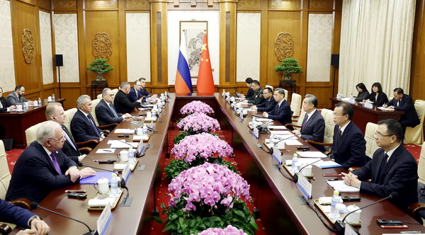 王毅说,今年是中俄建交75周年,习近平主席和普京总统年内三次会晤,对推动两国关系乘势而上、开拓进取作出一系列战略部署。在两国元首坚强领导下,中俄关系经受住国际风云考验,始终保持健康稳定发展势头。双方秉持永久睦邻友好、全面战略协作、互利合作共赢原则,以服务两国人民根本利益为己任,在涉及彼此核心关切问题上坚定相互支持,不断深化政治互信,扎实推进务实合作,打造出相邻大国关系的新范式,也为促进全球南方国家团结合作作出重要贡献。