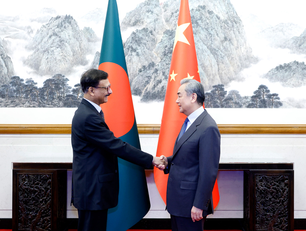 王毅说,你把中国作为就任后首次访问的国家,体现了孟加拉国临时政府和你本人对中孟关系的高度重视。中国和孟加拉国是守望相助的好邻居、共谋发展的好伙伴。建交50年来,双方始终相互尊重、平等相待、合作共赢,树立了国家间关系的典范。中方始终把孟加拉国置于周边外交重要方向,奉行面向全体孟加拉国人民的睦邻友好政策。今年是中孟建交50周年,也是“中孟人文交流年”,两国关系发展面临新机遇。中方愿同孟方一道,赓续传统友谊,加强战略沟通,深化务实合作,高质量共建“一带一路”,推动中孟全面战略合作伙伴关系不断向前发展。