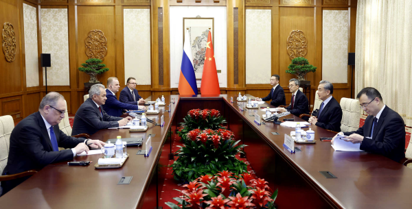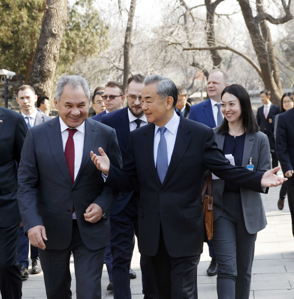 2025年2月28日,中共中央政治局委员、中央外办主任王毅在北京会见俄罗斯联邦安全会议秘书绍伊古。