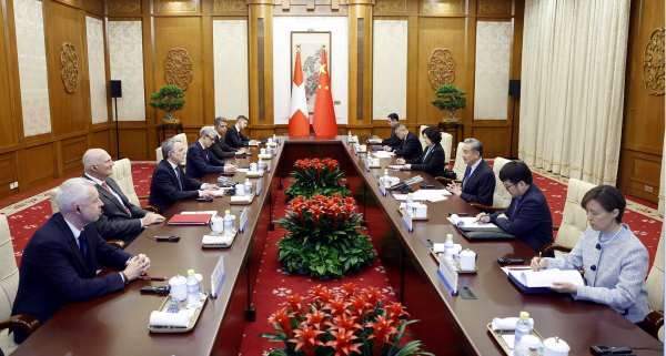 2025年4月24日,中共中央政治局委员、外交部长王毅在京会见来华工作访问的瑞士联邦委员兼外长卡西斯。