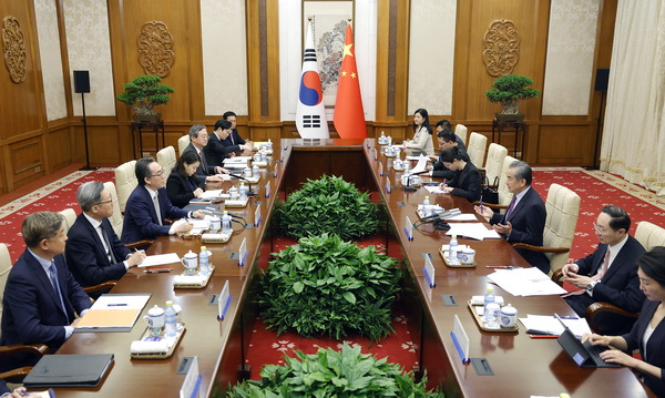 王毅表示,中韩是近邻,应当常来常往。建交30多年来,两国关系总体发展顺利、富有成果。双方于2008年建立战略合作伙伴关系,把同对方关系放在各自外交更重要的位置上。中韩在交流合作中相互成就,实现共同发展,为地区和平与繁荣贡献了力量,充分说明中韩关系发展符合时代潮流,体现了人民意愿。近段时间,中韩关系面临困难和挑战,这不符合双方共同利益,也不是中方愿意看到的。希望韩方与中方一道,坚守两国建交初心,坚持睦邻友好方向,坚定互利合作目标,排除干扰,相向而行,合力推动中韩关系健康稳定发展。