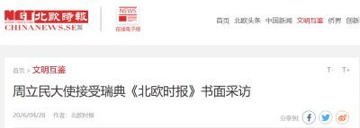 2026年4月28日,驻瑞典大使周立民接受瑞典华文媒体《北欧华人报》《北欧时报》联合书面采访。全文如下: