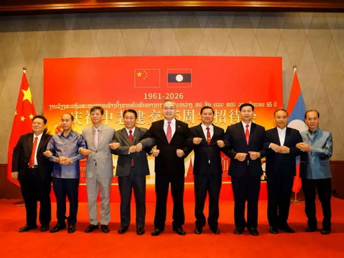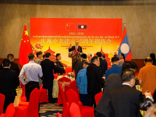 2026年4月24日,驻琅勃拉邦总领馆举办庆祝中老建交65周年暨中老友好年招待会。驻琅勃拉邦总领事张社平,琅勃拉邦省委书记本倰、丰沙里省委书记宋鹏等北部各省负责人,越南驻琅总领事武玉李及领区各界代表出席。