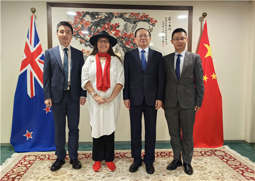 2026年4月28日,驻奥克兰总领事陈世杰在馆内会见新中友协奥克兰分会新任主席李焱,就促进两国民间友好等议题交换意见。