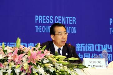 2011年4月14日下午,外交部部长助理吴海龙在金砖国家领导人第三次会晤中国代表团新闻中心就会晤成果及意义举行中外媒体吹风会。