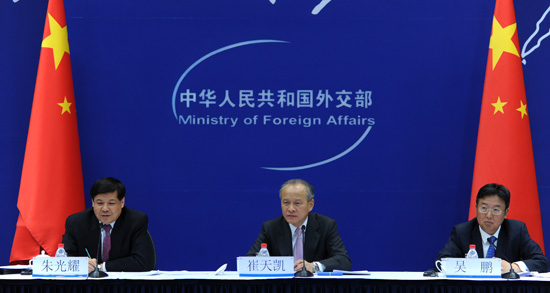 崔天凯和朱光耀还回答了记者提问,近百名中外记者出席了吹风会。