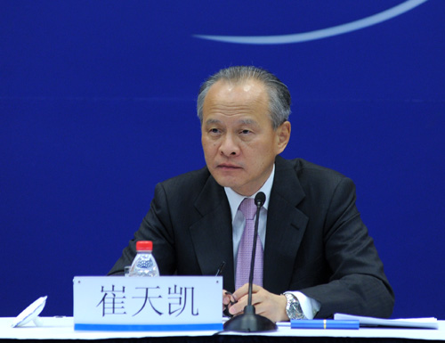 崔天凯强调,中方期待通过本轮对话,回顾、总结四轮战略对话的重要共识和有益经验,为今后对话提供借鉴和启示。通过对话增进相互了解和信任,扩大双边多边合作,管控好分歧,推进中美合作伙伴关系建设。通过对话规划对话机制未来,探索中美共同建设相互尊重、合作共赢的新型大国关系之道。