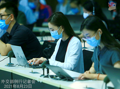 汪文斌:中方高度关注在阿富汗的中国机构和人员安全。目前,中国驻阿富汗使馆在正常工作,大部分在阿中国公民已经在使馆安排下先期回国。对自愿留下来的零星人员,使馆一直同他们保持密切联系,指导他们加强安防意识和措施,并协调阿富汗有关方面切实为其提供安全保障。