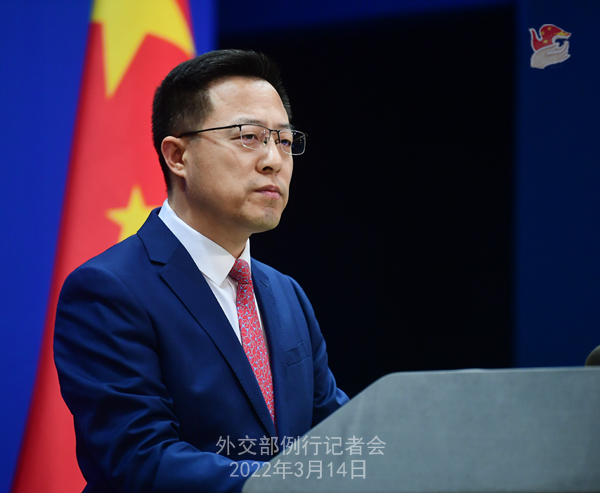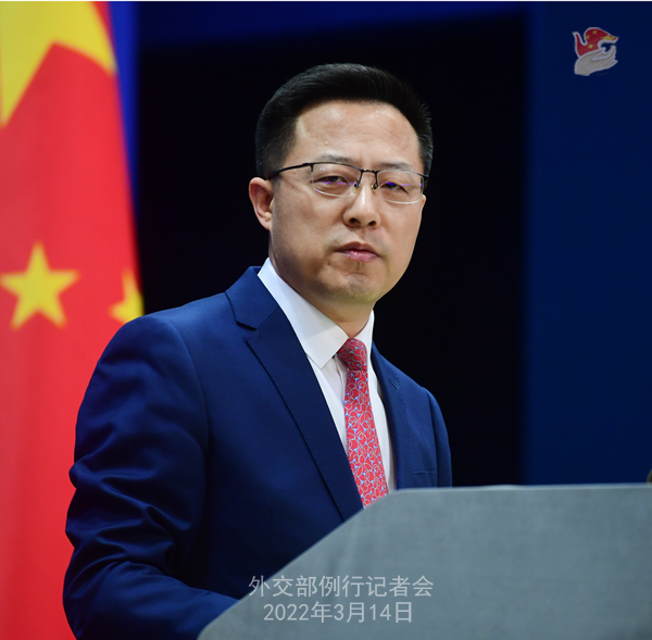 赵立坚:近期,美方在乌克兰问题上接二连三散布针对中国的虚假信息,用心险恶。中方在乌克兰问题上的立场是一贯、明确的。我们一直以来为劝和促谈发挥着建设性作用。当务之急是各方保持克制,为紧张局势降温而不是火上浇油,推动外交解决而不是使局势进一步升级。