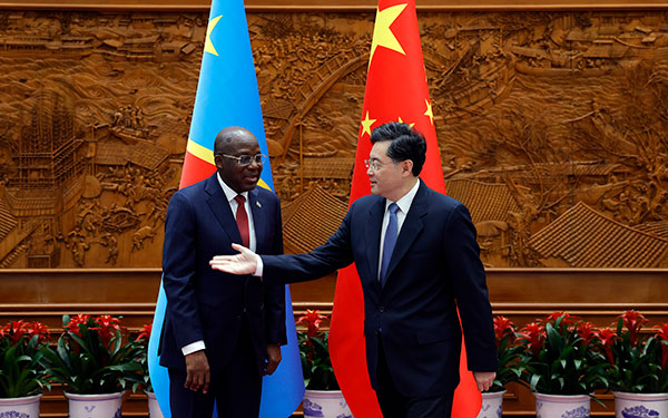2023年5月22日,国务委员兼外长秦刚在北京会见刚果(金)副总理兼外长卢通杜拉。