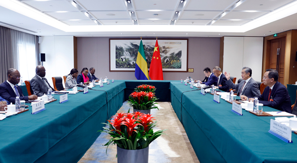 2024年7月12日,中共中央政治局委员、外交部长王毅在京会见来华出席全球共享发展行动论坛第二届高级别会议的加蓬外长奥南加。