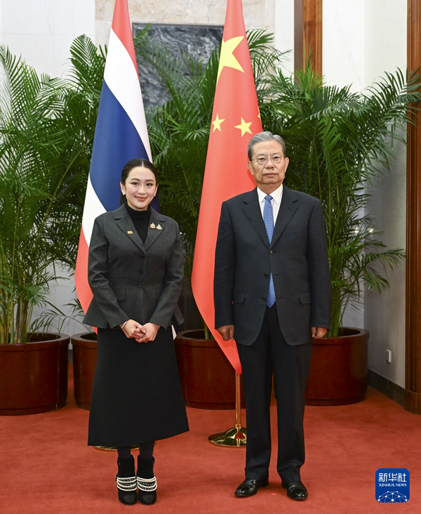 在会见佩通坦时,赵乐际表示,中泰关系长期保持健康稳定发展,得益于两国领导人的高瞻远瞩和把舵定向。中方愿同泰方一道,以今年中泰建交50周年为契机,落实两国领导人重要共识,加快推进各领域互利合作,共同谱写中泰命运共同体建设新篇章。立法机构交往是构建中泰命运共同体的重要组成部分。中国全国人大愿同泰国国会保持友好交往势头,围绕民生改善、社会治理、打击跨境犯罪等开展立法交流合作,更好服务各自国家发展。